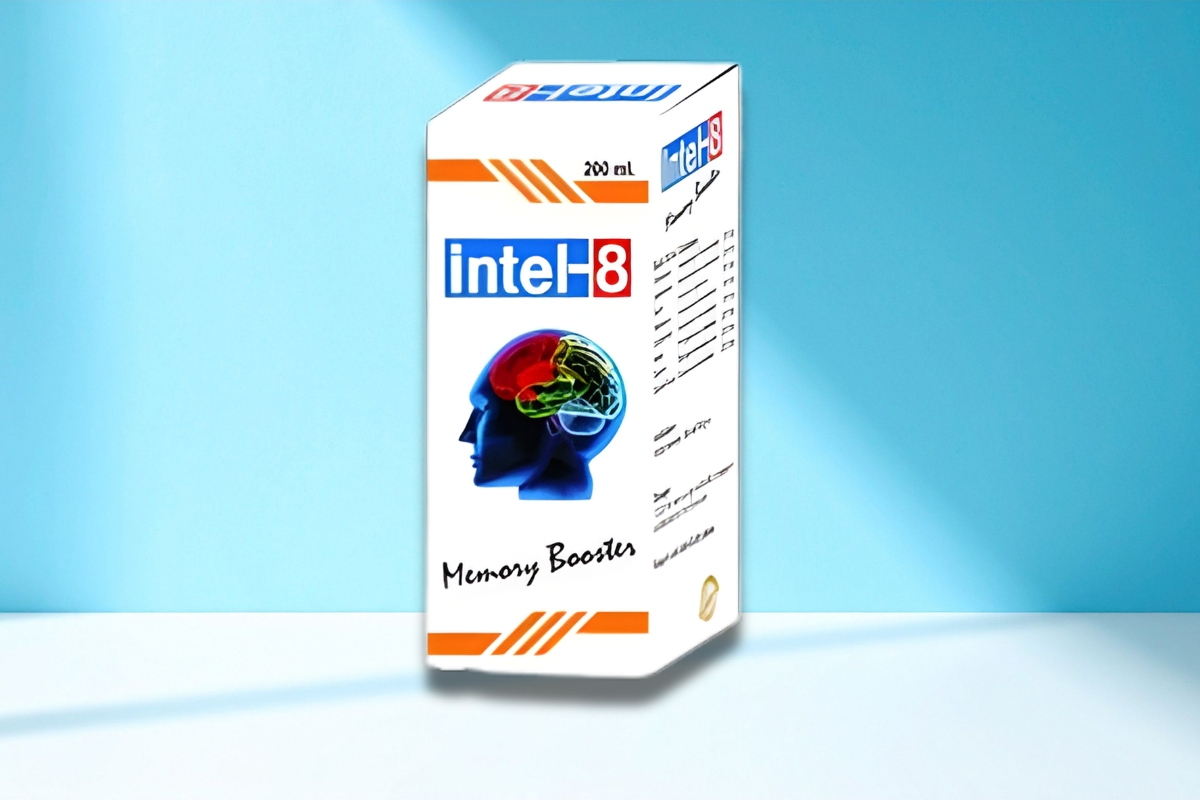 Intel 8 Syrup is an Ayurvedic formulation designed as a natural brain tonic to support mental health, memory, and intellect. It is made using a blend of eight powerful herbs mentioned in Ayurvedic texts that are known to enhance cognitive functions. Intel 8 Syrup is helpful for people experiencing mental weakness, fatigue, poor memory, or insomnia caused by a stressful lifestyle.