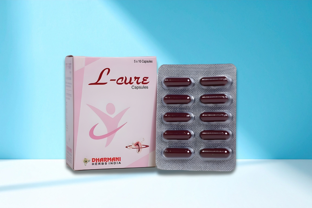 L-Cure capsules For gynaeco-diseases Indication: L-Cure is very qualitative in treatment of leucorrhoea, Menorrhagia, irregular menstruation, immature abortion, uteritis and intra-genital perversions. Ingredients: Ashok, Lodh, Amla, Naag kesar, Mauchras, Supari, Palash pushp, Shubhra bhasm, Gaudanti bhasm, Giloy, Aswagandha, Mulethi, Shudh Shilajeet, Lauh bhasm, Muktashukti bhasm, Trivang bhasm. Dosage : 1-2 capsules twice or thrice A day with milk or water.