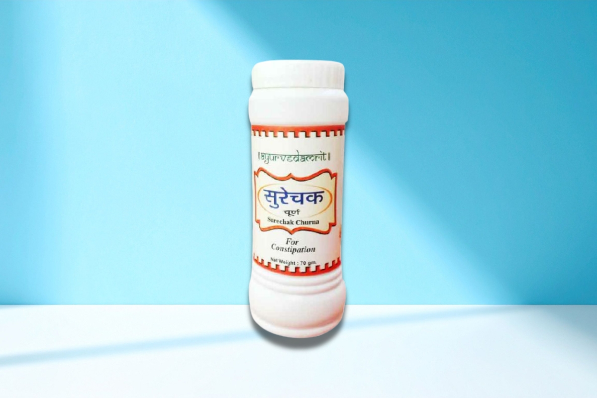 Surechak Churna is a natural Ayurvedic formulation designed to support healthy bowel movements and relieve constipation. It acts as a gentle laxative and is also beneficial for people experiencing gas, abdominal distension, heaviness in the stomach, or headaches caused by digestive issues.